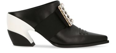 Talon audacieux et boucle constellée de cristaux font des mules Viv Tex Strass signées Roger Vivier un must de l'élégance que les femmes vont adopter avec gourmandise.