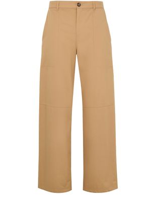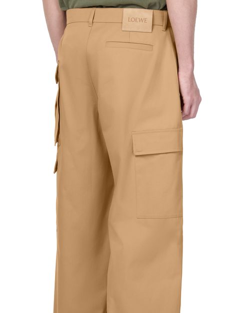 Le pantalon cargo en coton Loewe allie confort et style. Sa coupe ample à la longueur cheville offre une allure décontractée. Les poches à rabat et latérales ajoutent une touche pratique, tandis que la fermeture à bouton et à glissière dissimulée assure une finition soignée. L'étiquette en cuir à l’arrière avec logo souligne l'élégance.