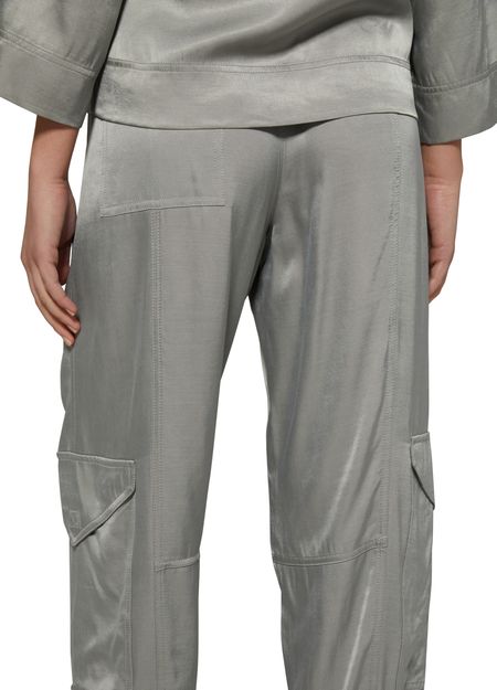 • Description : étiquette avec logo à l’arrière, longueur cheville, taille élastique avec cordon coulissant, poches latérales, deux poches avant, poche arrière, poches à rabat.