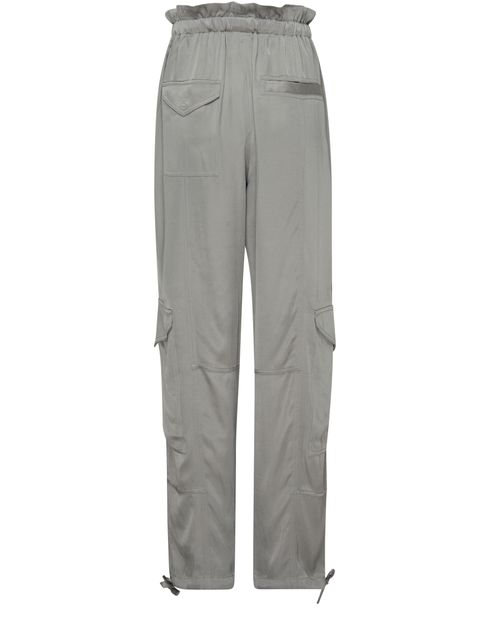 Pantalon cargo Ganni avec étiquette logo à l’arrière, longueur cheville. Taille élastique avec cordon coulissant, poches latérales, deux poches avant, poche arrière et poches à rabat.