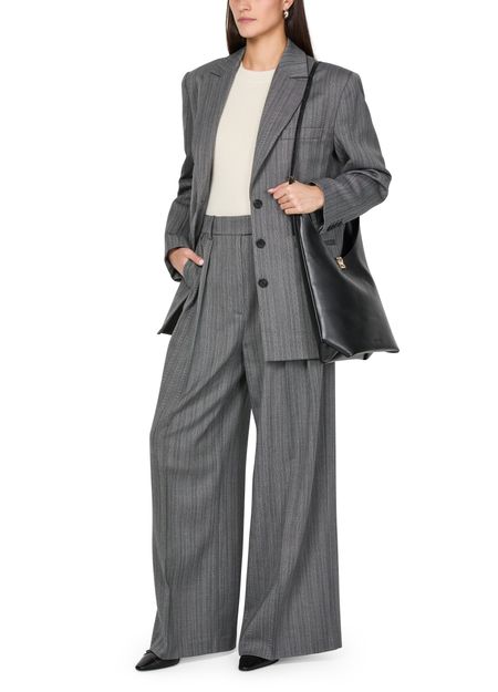 Le pantalon Lou d'Anine Bing se distingue par sa fermeture dissimulée et ses passants pour ceinture. Avec une coupe ample et une taille ceinturée, il offre une silhouette élégante. Les pinces à l'avant et l'imprimé rayures all-over ajoutent une touche de sophistication, tandis que la longueur cheville sublime chaque pas.