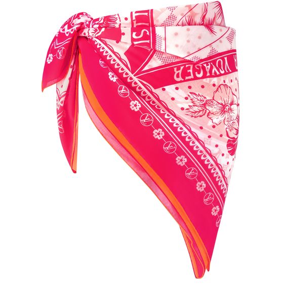 Le design réversible créatif de ce paréo Two For One célèbre l’esprit du voyage cher à Louis Vuitton. Son motif associe une fleur de Monogram à un coucher de soleil tropical et au slogan classique de la Maison dans les années 60 : « Volez, Voguez, Voyagez ». Idéal à tout moment, ce paréo coloré peut se porter comme un haut, enroulé autour de la...