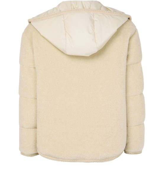• Description : Matière chaude, bi-matière, court, sans col, manches longues, poches latérales, fermeture à bouton, texture capitonnée, bords surpiqués.