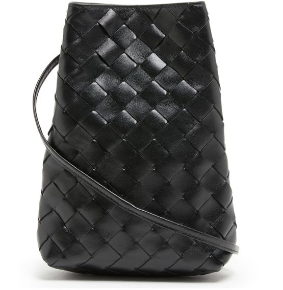 Découvrez la pochette pour téléphone Bottega Veneta, dotée de surpiqûres visibles et d'une conception pratique. Avec sa fine lanière et ses doubles poignées, elle peut être portée au dos comme un sac à dos, alliant style et fonctionnalité.