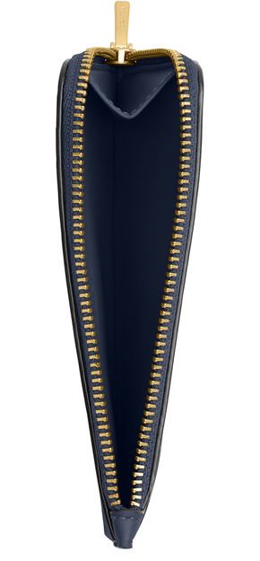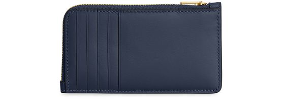 • Description : Porte-cartes, logo en lettres dorées, logo à l'avant, cuir lisse, fermeture à glissière, surpiqûres apparentes, finitions dorées.