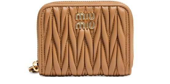 Adoptez le portefeuille zippée en cuir matelassé de Miu Miu. Ce modèle allie fonctionnalité et élégance, avec le logo "Miu Miu" lettres en métal et le détail matelassé en chevron signature. Doté de surpiqûres apparentes et d'une fermeture à glissière, il offre des fentes pour cartes à l'intérieur.