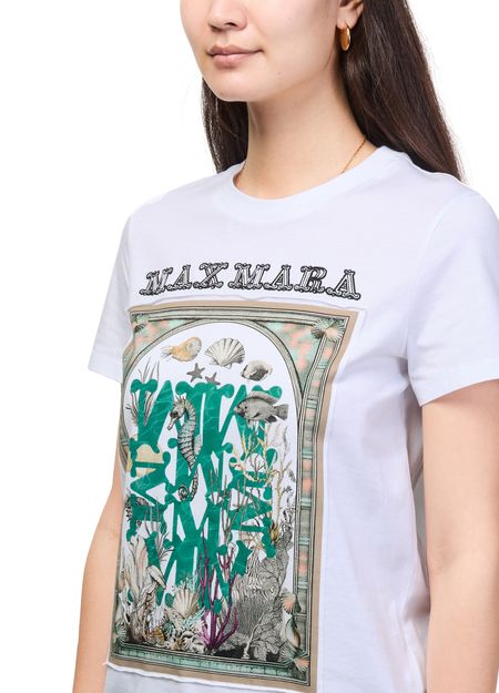 Découvrez le t-shirt imprimé avec logo de Max Mara, doté d'une encolure ras du cou et de manches courtes pour une allure contemporaine. Son imprimé all-over et le logo à l'avant apportent une touche graphique, parfait pour dynamiser un pantalon ou une jupe élégante.