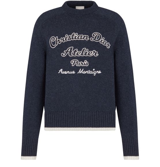 Découvrez le pull Christian Dior Atelier de Dior, avec une broderie sur la poitrine. Les ourlets et poignets contrastants, associés au col rond côtelé, ajoutent une touche intemporelle à votre garde-robe.