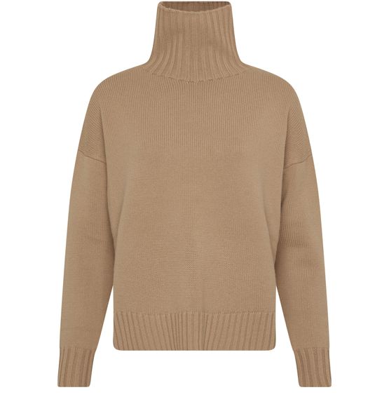 • Description : Matière chaude, forme ample, col montant, emmanchure basse, manches longues, bords-côtes.