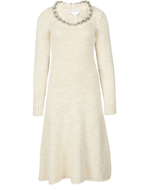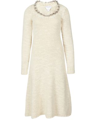L'essence romantique de Bottega Venetta s'illustre à travers cette robe à manches longues. Ses plis et ses motifs discrets en font une création élégante et raffinée.