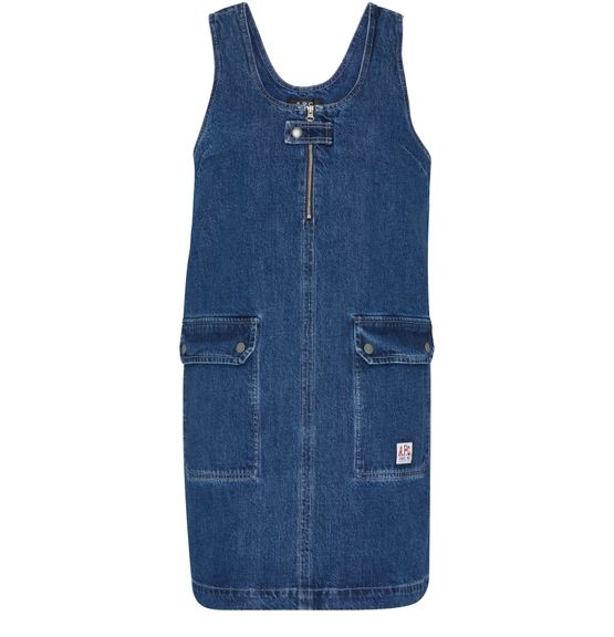 La robe courte Dominic d'APC incarne l'élégance décontractée. Sans manches et dotée d'un col rond, elle se distingue par sa fermeture à glissière et ses surpiqûres visibles. Ses grandes poches avant et poches à rabat ajoutent une touche pratique, parfaite pour une journée ensoleillée ou une soirée entre amis.