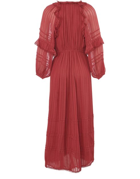 Cette robe Justine révèle un ensemble de détails élégants, avec une taille élastique marquée et des effets volantés. Une création bohème qui booste le look, signée Etoile Isabel Marant.