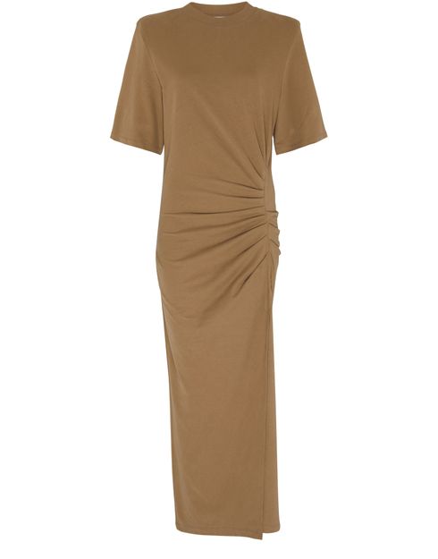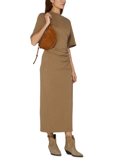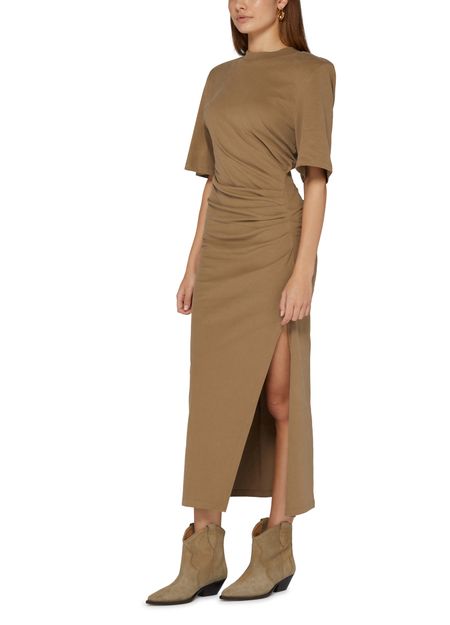 La robe longue Lexia d'Isabel Marant présente une encolure ras du cou et des manches courtes. L'étiquette avec logo à l’arrière ajoute une touche de sophistication à cette robe midi. Le détail drapé apporte une allure élégante et féminine à cette pièce intemporelle.