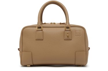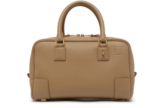 Le sac Amazona 23 en cuir de veau grainé souple de Loewe présente des surpiqûres apparentes, une fermeture à glissière, un logo embossé à l'avant, une bandoulière fine et des finitions dorées. Il peut être porté à la main, à l'épaule ou avec sa bandoulière amovible. Doté d'un compartiment unique, d'une poche intérieure zippée et de coutures apparentes, il allie élégance et fonctionnalité.