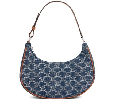 Le sac Ava en denim imprimé Triomphe de Celine incarne l'élégance moderne. Sa texture textile et ses garnitures en veau apportent une sophistication unique. Avec sa fermeture zippée et son anse ajustable, il se porte aussi bien à la main qu'à l'épaule, alliant praticité et style pour toutes les occasions.