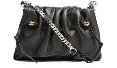Découvrez le sac bourse Bolton d'Isabel Marant, en cuir grainé avec une bandoulière chaîne élégante. Ce sac présente des détails pompon, une poche intérieure zippée et une fermeture à rabat aimanté. Le logo à l'avant ajoutent une touche d'élégance, parfait pour toutes les occasions.