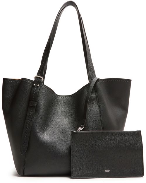 Découvrez le sac cabas Archetipo de Max Mara, réalisé en cuir grainé. Ce cabas allie style et praticité grâce à sa poignée double et sa pochette intérieure amovible. Le grand compartiment offre de l'espace, tandis que la fermeture boutons-pression et les surpiqûres apparentes ajoutent une touche de sophistication.