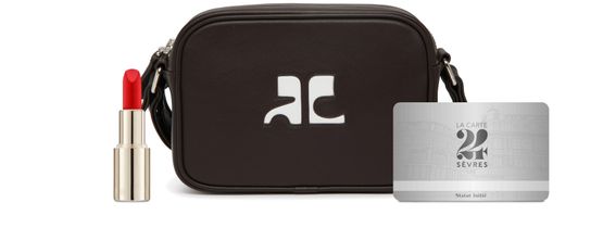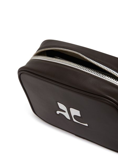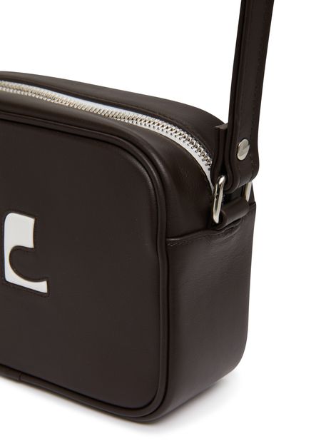 Le Sac Camera en cuir Réédition de Courrèges est un accessoire moderne et pratique. Doté d'un logo à l'avant, d'une bandoulière large et ajustable, et d'une fermeture à glissière, il peut être porté à l'épaule ou en bandoulière. Sa poignée pratique permet un transport facile.