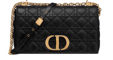 Le sac Dior Caro est présenté en cuir de veau noir souple à coutures Cannage, sublimé par la texture matelassée immédiatement reconnaissable. Ce sac souple est doté d’un rabat rehaussé d’un fermoir twist "CD" en métal doré vieilli, inspiré d'un flacon de parfum Christian Dior. La bandoulière chaîne détachable à maillons signature "CD" pourra être remplacée par une large bandoulière brodée de la Maison et...