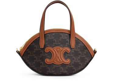 Découvrez le sac en toile Triomphe de Celine, une pièce maîtresse avec sa doublure textile luxueuse et ses finitions dorées. Ce modèle polyvalent se porte à l'épaule ou en bandoulière, avec une fermeture zippée et un compartiment principal. Ses poignées en cuir et sa bandoulière ajustable et amovible rehaussent son élégance.
