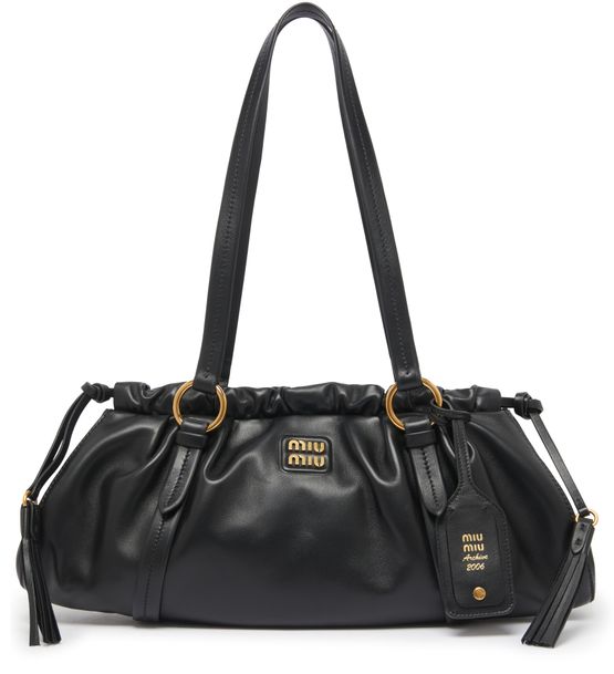 Le sac Joie en cuir nappa incarne l'élégance contemporaine. Son compartiment unique offre un espace pratique, tandis que les finitions dorées et le logo en lettres dorées à l'avant ajoutent une touche de luxe. La poignée double et la bandoulière fine permettent un porté épaule chic, avec une poche intérieure zippée pour la sécurité. Les surpiqûres apparentes soulignent son design raffiné.