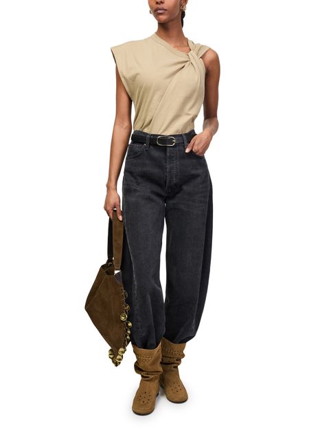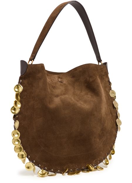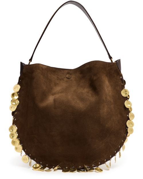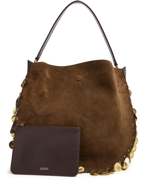 Découvrez le sac Oskan Hobo Soft de Isabel Marant, confectionné en cuir velours avec une poignée unique. Son grand compartiment intérieur et sa poche zippée assurent une organisation élégante, tandis que les finitions dorées et métalliques, ainsi que les surpiqûres apparentes, soulignent son allure moderne.