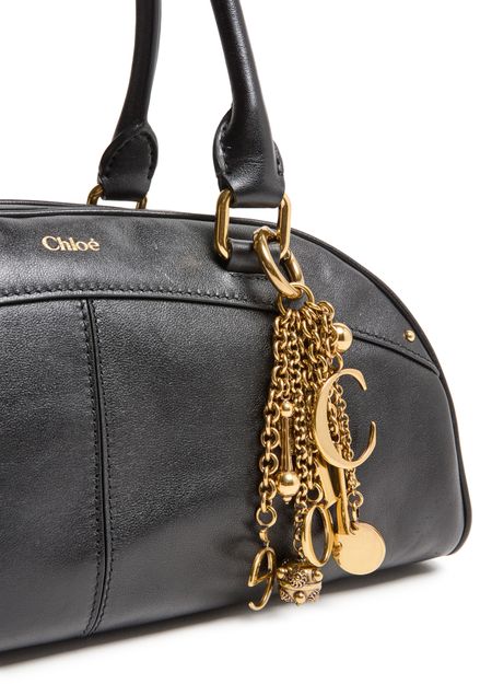 Découvrez le sac porté épaule Chloe bowling, confectionné en cuir lisse avec poignée double pour une allure sophistiquée. Charms dorés et médaillon cheval métallique subliment le design, tandis que le logo doré à l'avant et les surpiqûres apparentes soulignent le savoir-faire. Fermeture à glissière et compartiment unique pour plus de praticité.