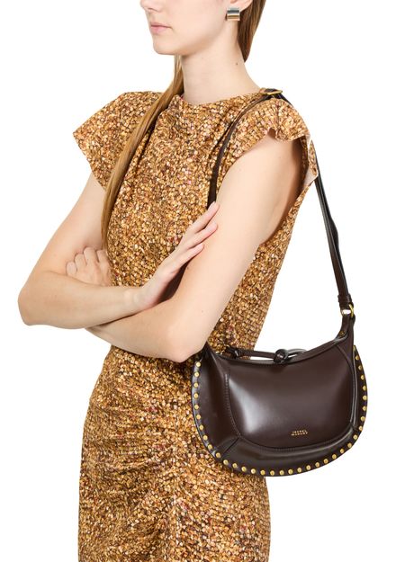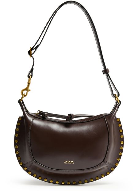 Découvrez le sac Oskan Moon d'Isabel Marant, un sac porté épaule en cuir lisse. Ce sac se distingue par ses détails de clous et sa poignée unique, alliant style et praticité. Avec sa fermeture à glissière, sa poche intérieure et ses surpiqûres apparentes, il incarne l'élégance moderne avec des finitions métalliques.