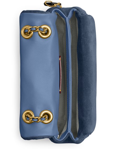 Découvrez le sac porté épaule chevrons Coach, sublimé par une boucle « C » aimantée et des finitions dorées. La bandoulière chaîne, le logo métallique à l’avant et l’étiquette décorative embossée signent une allure sophistiquée, rehaussée par des coutures apparentes raffinées.