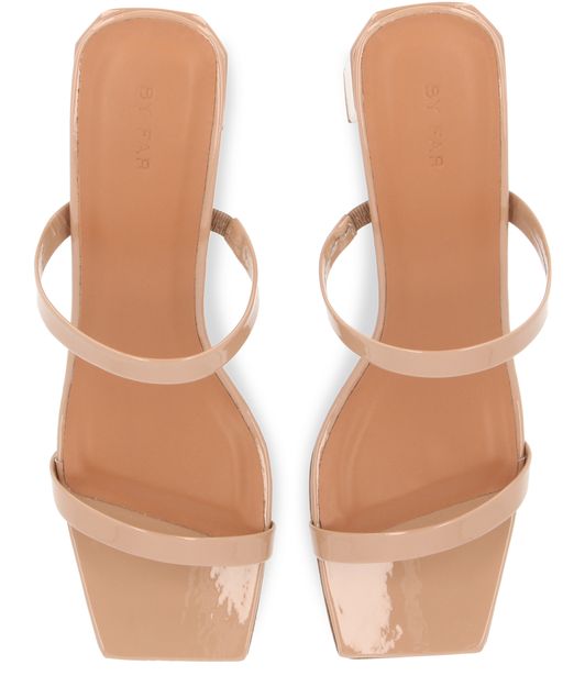 Les sandales Tanya sont signées By Far. Ces chaussures ouvertes offrent un design carré, un talon large et disposent de deux fines brides vernies pour habiller le pied.