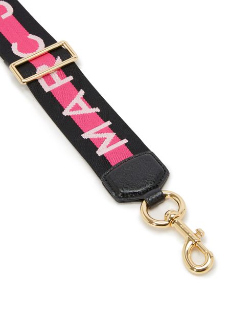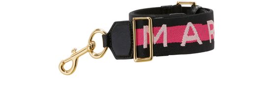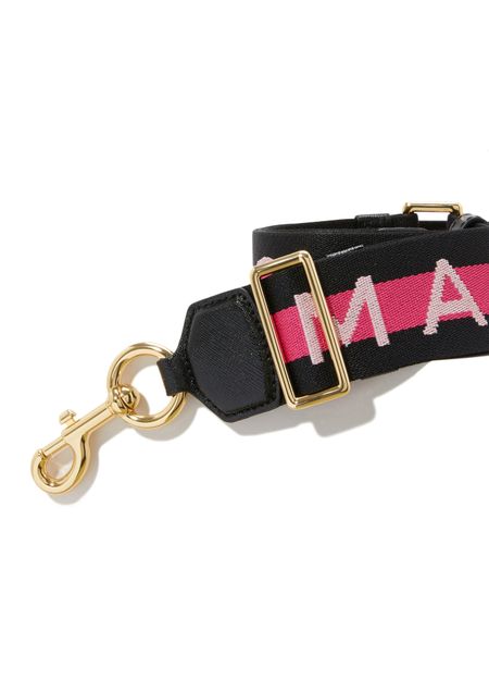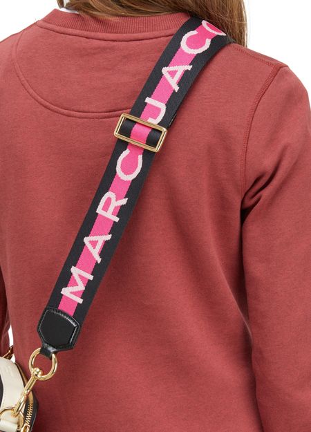 Cet accessoire signé Marc Jacobs révèle un imprimé contrasté qui booste le look ! Avec ce modèle de sangle en toile, le créateur mise sur des finitions audacieuses.