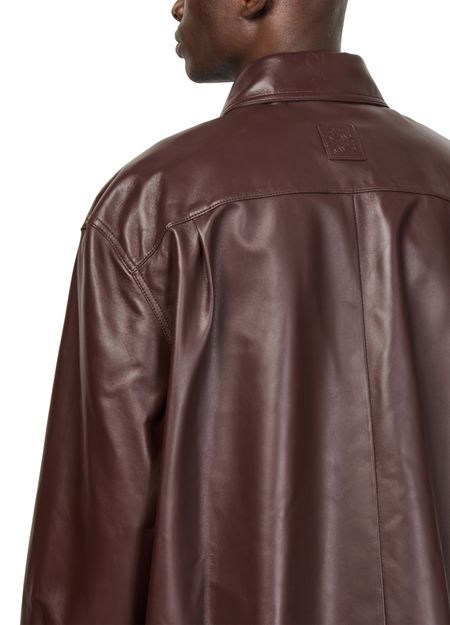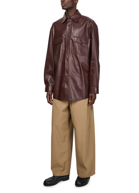 Découvrez la surchemise Loewe en cuir nappa, une pièce incontournable. Confectionnée en cuir lisse, elle présente une coupe regular et une longueur courte avec fermeture à bouton. Dotée de manches longues et de deux poches plaquées sur la poitrine, elle est idéale pour des looks décontractés ou plus habillés.