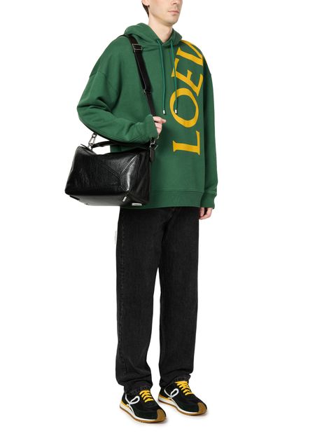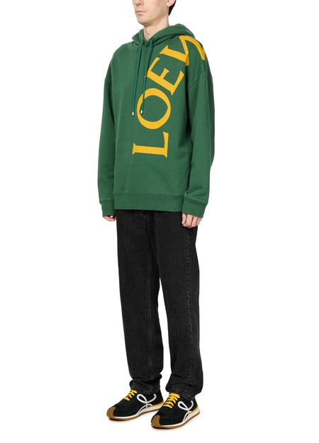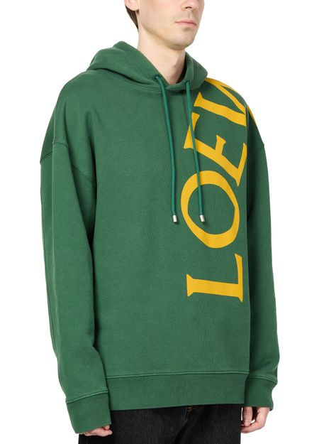 La sweatshirt à capuche décontracté en coton de Loewe allie confort et style. Son logo à l'avant est bien visible, tandis que l'imprimé subtil ajoute une touche d'élégance. Avec des manches longues et un col ajustable avec cordon, ses manches resserrées et poignets resserrés offrent une silhouette moderne et raffinée.