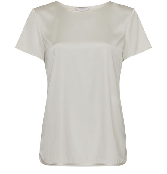 Le t-shirt en satin Cortona de Max Mara est un classique intemporel avec des manches courtes et une encolure ras du cou. Il est orné d'une étiquette avec logo à l'arrière pour une touche de sophistication. Parfait pour un look décontracté et élégant, ce t-shirt apportera une touche de luxe à votre garde-robe.