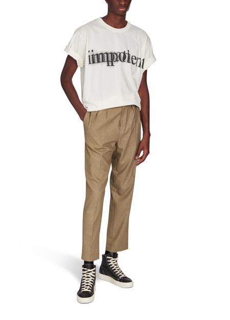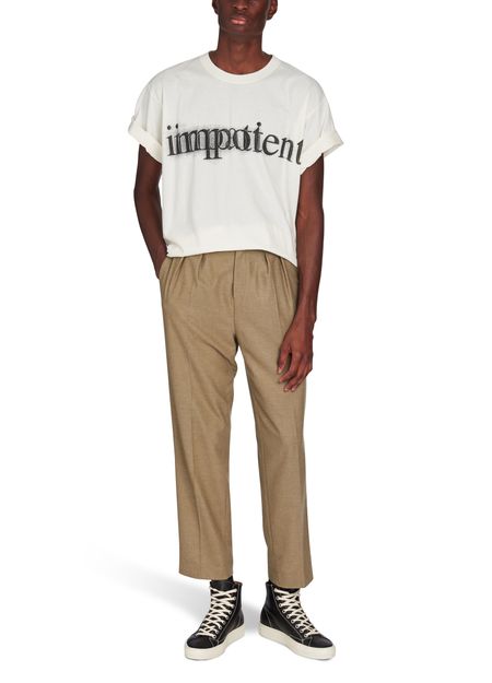 Cette audacieuse pièce de défilé propose un imprimé graphique offrant un jeu de mots moderne et subtil. Le T-shirt Impotent/Impatient est une création signée Gucci.