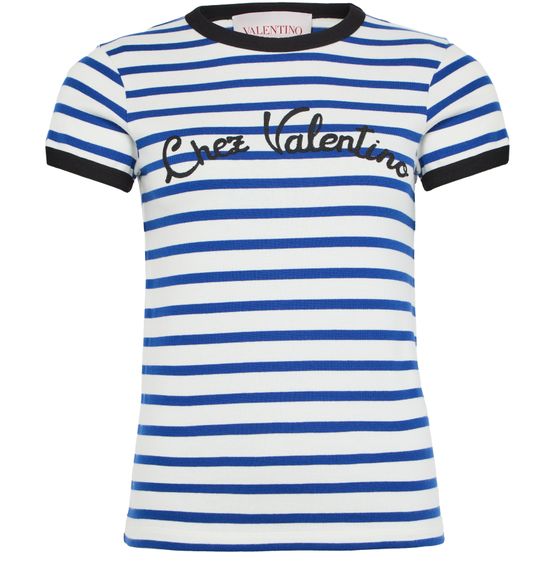 Le t-shirt manches courtes à logo de Valentino incarne l'élégance classique. Avec un logo sur la poitrine et un imprimé rayures subtil, il se distingue par son encolure ras du cou. Parfait pour un look décontracté, ce t-shirt ajoute une touche de sophistication à toute garde-robe.