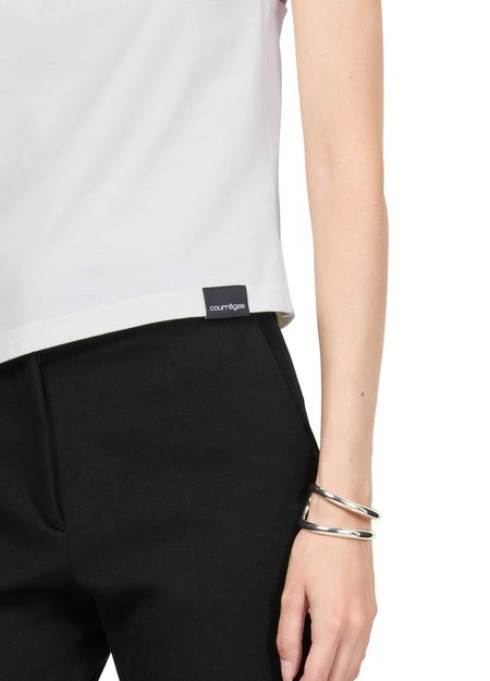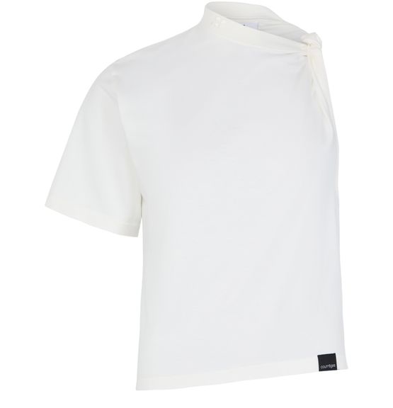 Découvrez le T-shirt Twist asymétrique de Courrèges, où modernité et élégance se rencontrent. Doté d'une encolure montante, de manches courtes et d'un logo imprimé distinctif, il offre une silhouette épurée. Idéal pour toutes les occasions, ce top s'associe facilement à des styles divers, incarnant une allure contemporaine.