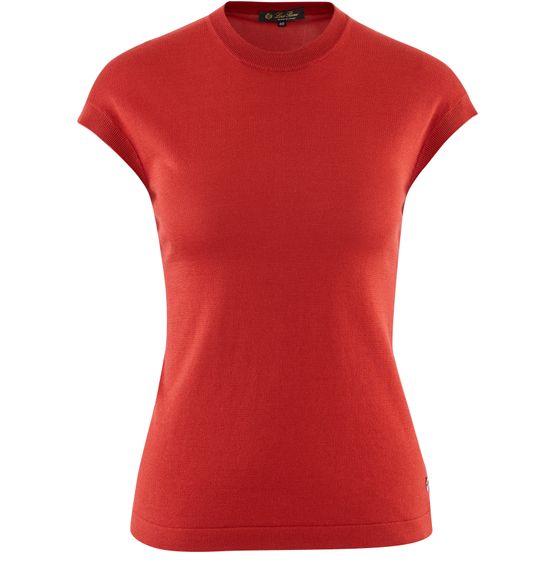 Pull ras du cou à manches courtes en maille lisse de coton et soie. Doux et enveloppant, c'est un modèle passe-partout également parfait utilisé sous une veste.