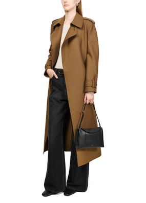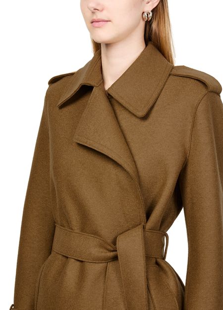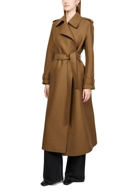 Découvrez le trench long à double couture en laine pressée de Harris Wharf London. Ce modèle raffiné se distingue par un col à revers, des manches longues et des finitions surpiquées. Pratique, il est doté de poches latérales et d'une fermeture croisée pour un look élégant en toutes circonstances.