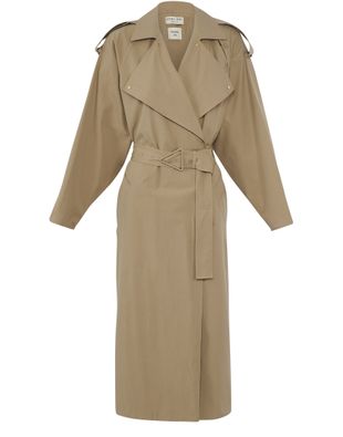 Le trenchcoat Compact de Bottega Veneta redimensionne les codes classiques de ce vêtement avec son large col, sa longueur cheville et ses longues pattes d'épaule.