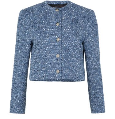 • Description : manches longues, sans col, boutons sur le devant, logo appliqué, coupe ample, finitions argentées, court, vestes casual.