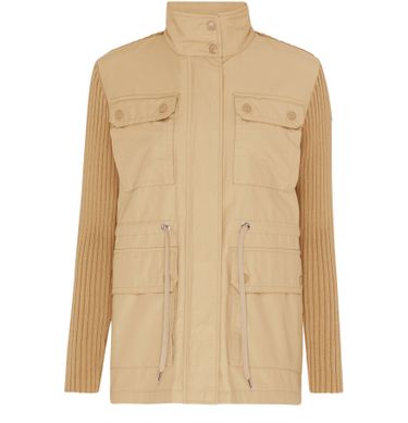 La veste bi-matière Moncler présente un design mi-long avec une fermeture à glissière dissimulée et des manches longues. Elle est agrémentée d'une étiquette avec logo à l'arrière, ajoutant une touche de style emblématique. Parfaite pour affronter les jours plus frais avec élégance et confort.