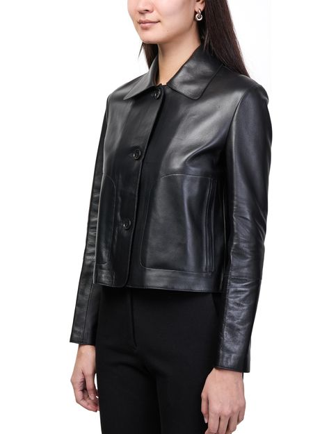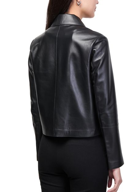 Découvrez la veste en cuir d’agneau emy de Arma, confectionnée en cuir d’agneau souple. Sa coupe courte, ses manches longues et sa fermeture à bouton offrent une allure moderne, tandis que les poches latérales ajoutent une touche pratique à ce modèle polyvalent.