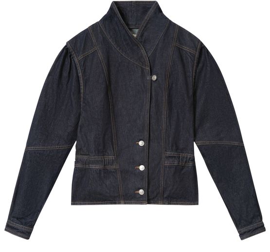 Découvrez la veste en denim Dolie Isabel Marant, silhouette camionneur courte en denim de qualité. Sa fermeture à bouton et ses manches longues s’associent à des bords surpiqués et une coupe asymétrique pour un style affirmé. Parfaite pour sublimer vos looks du quotidien ou des occasions spéciales.