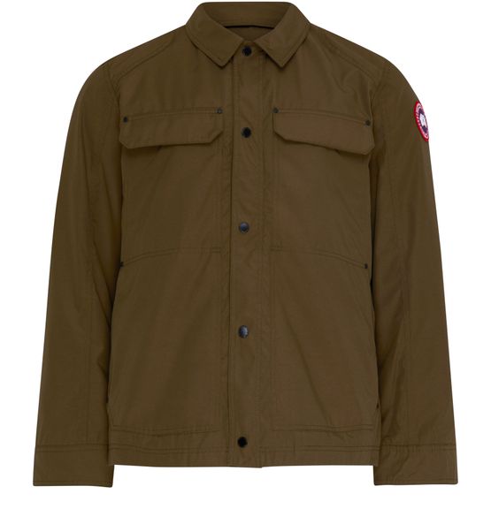 La veste légère Burnaby de Canada Goose est un vêtement casual à manches longues avec logo sur le côté. Elle a une fermeture à bouton avec détail patch et poche poitrine. Les boutons sur le devant ajoutent un style court et pratique avec poches à rabat et deux poches avant pour un look chic et fonctionnel.
