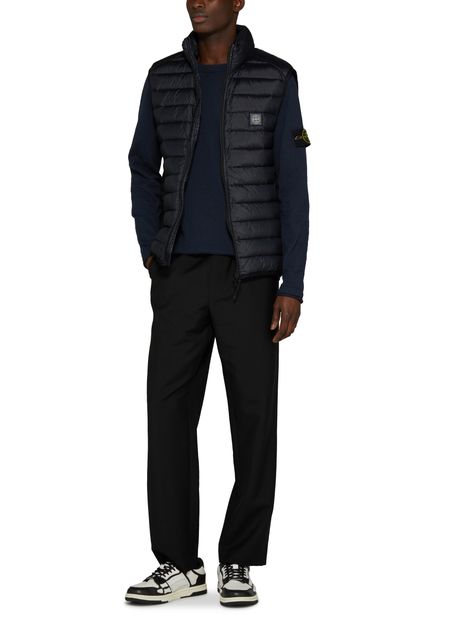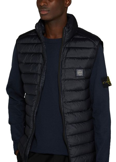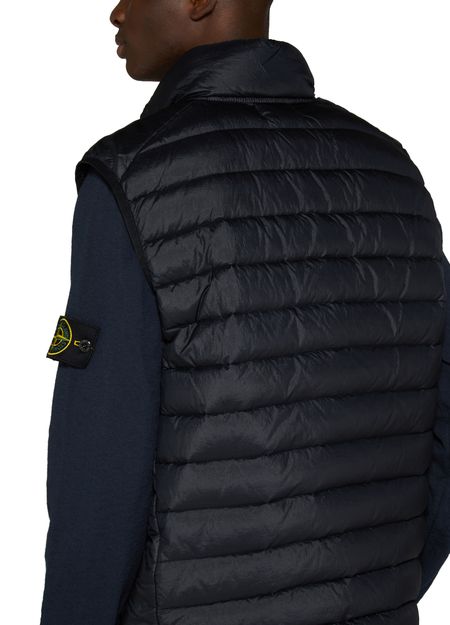 La veste sans manches en duvet de Stone Island est un vêtement polyvalent et élégant. Dotée d'un col montant et d'une fermeture à glissière, elle offre un confort optimal. Son logo appliqué sur la poitrine et ses poches latérales en font un choix pratique et stylé pour toutes les occasions.