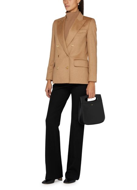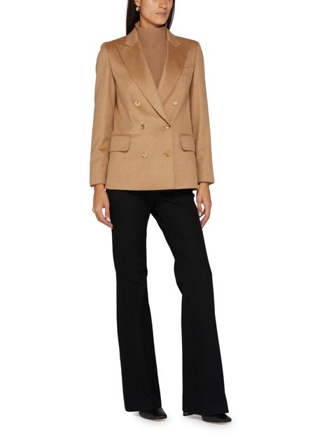 • Description : double boutonnage, col cranté, long, poches à rabat, poche poitrine, poches à rabat passepoilées, deux poches avant, manches longues.