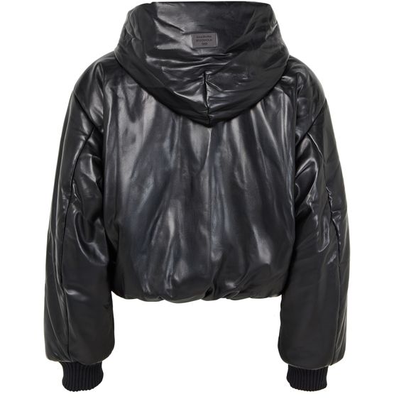 Découvrez le blouson bomber à capuche d'Acne Studios, une pièce moderne en cuir glacé. Ce modèle court à manches longues avec col montant et fermeture à glissière offre une silhouette élégante. Sa texture capitonnée et son intérieur doublé garantissent confort et style, idéal pour toutes les occasions.