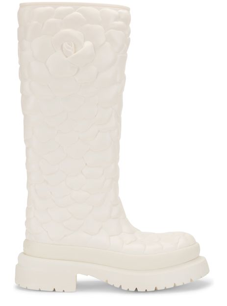 Avec leur tige haute recouverte des emblématiques pétales créés par l'atelier Valentino, les Valentino Garavani - Bottes de pluie Rose vont faire fondre les femmes. De quoi rêver de gadoue pour patauger en plein luxe.