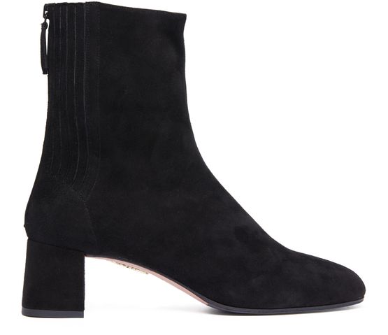 Les bottines Aquazzura Saint-Honoré 50 combinent l'élégance et le confort avec leur talon carré et leur semelle très fine. Dotées d'un zip à l'arrière pour un enfilage facile, elles sont ornées d'un motif rayé qui ajoute une touche de sophistication à chaque tenue. Un choix parfait pour une allure chic et tendance.